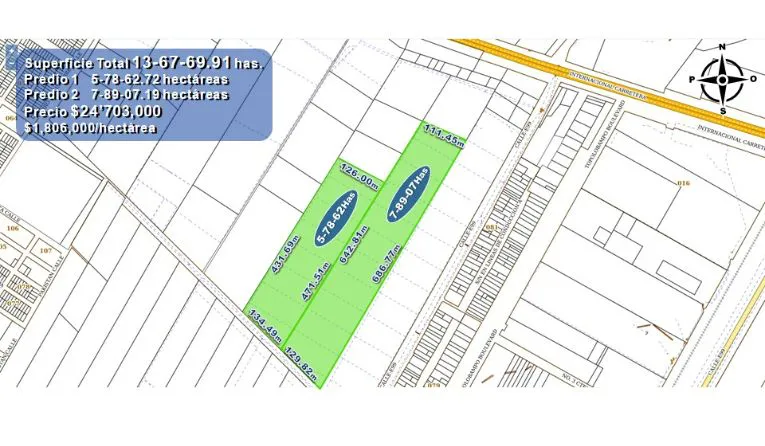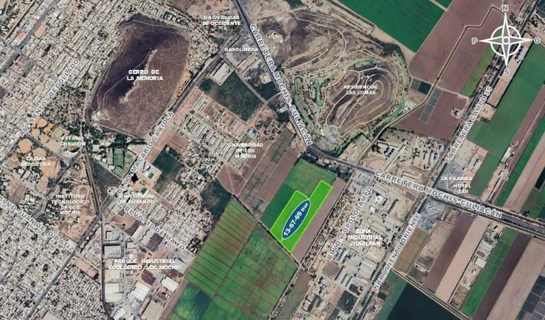 13.67 HECTAREAS Ejido Jiquilpan en Los Mochis, Sinaloa. Uso agrícola, industrial o para desarrollo habitacional.