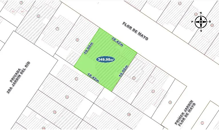 Terreno: 349.98 m2 con (Frente: 18.42m Fondo: 19.00m) Terreno rectangular, regular.