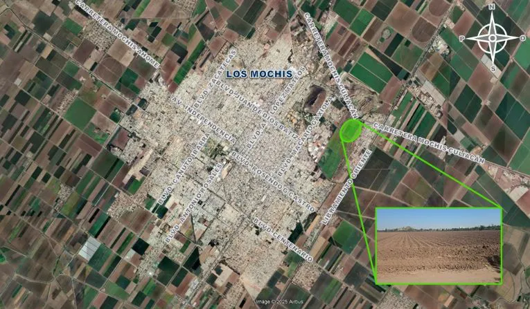 13.67 HECTAREAS Ejido Jiquilpan en Los Mochis, Sinaloa. Uso agrícola, industrial o para desarrollo habitacional.