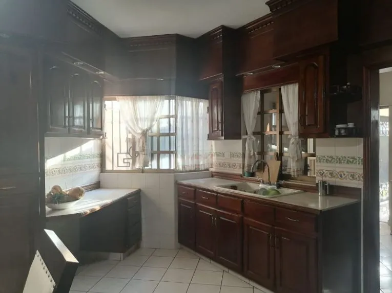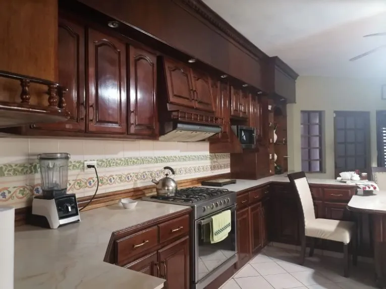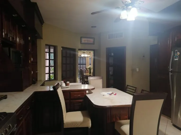 Casa dos plantas, planta baja consta de cochera para dos y hasta cuatro autos, amplia sala, cocina de cedro completa, recámara para visitas con baño y clóset interior, área de lavado, cuarto de servicio con baño y jardín.