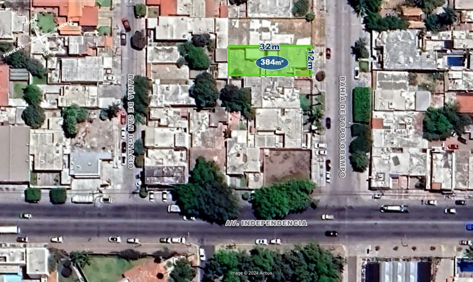 12m Fondo: 32m) Terreno rectangular, regular.