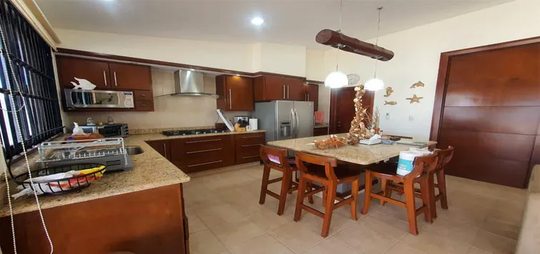 Al exterior de ambos Inmuebles, área de asadores techada y totalmente equipada, muy amplios pasillos y terrazas con preciosa vista frente al mar, regadera exterior, bodega multifuncional con estantería, generador de emergencia automático (1), cisterna Rotoplast de 22,000 litros, tanques de gas estacionario, etc.
