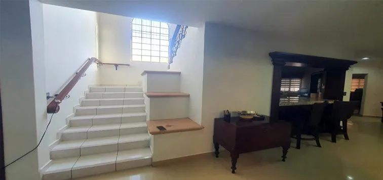 PLANTA ALTA: Distribuidor, muy amplia Sala de T.V., Recámaras (3) una de ellas con vestidor, Closet (1), Baños (2) uno de ellos equipado con jacuzzi en recámara principal, Estudio u Oficina, excelente Terraza la cual puede ser de gran utilidad como gimnasio, etc.